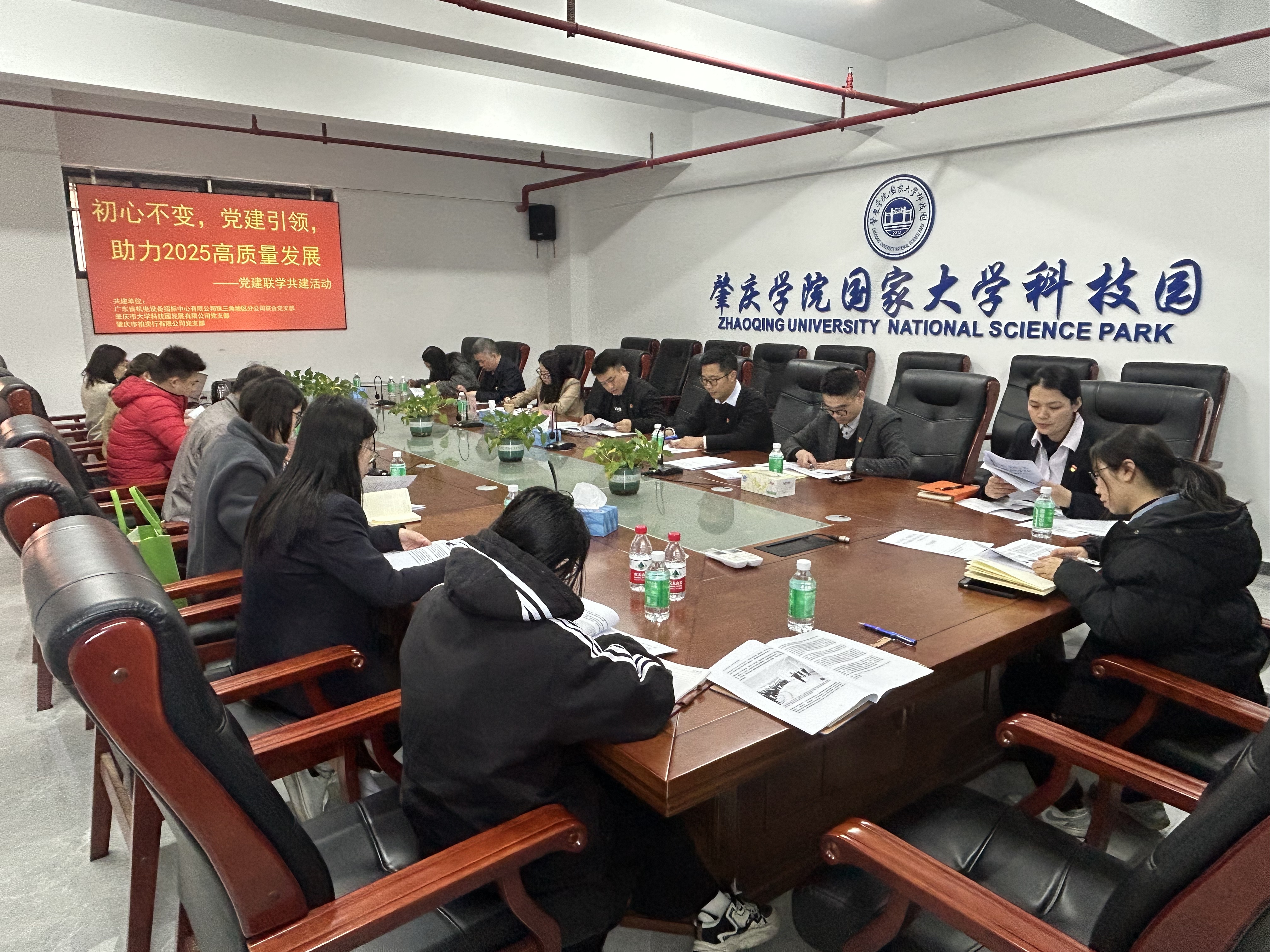 招标中心珠三角地区分公司联合党支部与科技园党支部、拍卖行党支部的全体党员及群众代表在肇庆学院国家大学科技园会议室集中学习了《习近平考察横琴粤澳深度合作区》《国务院国资委党委认真传达学习中央经济工作会议精神》《中共广东省委十三届六次全会暨省委经济工作会议召开》等内容。